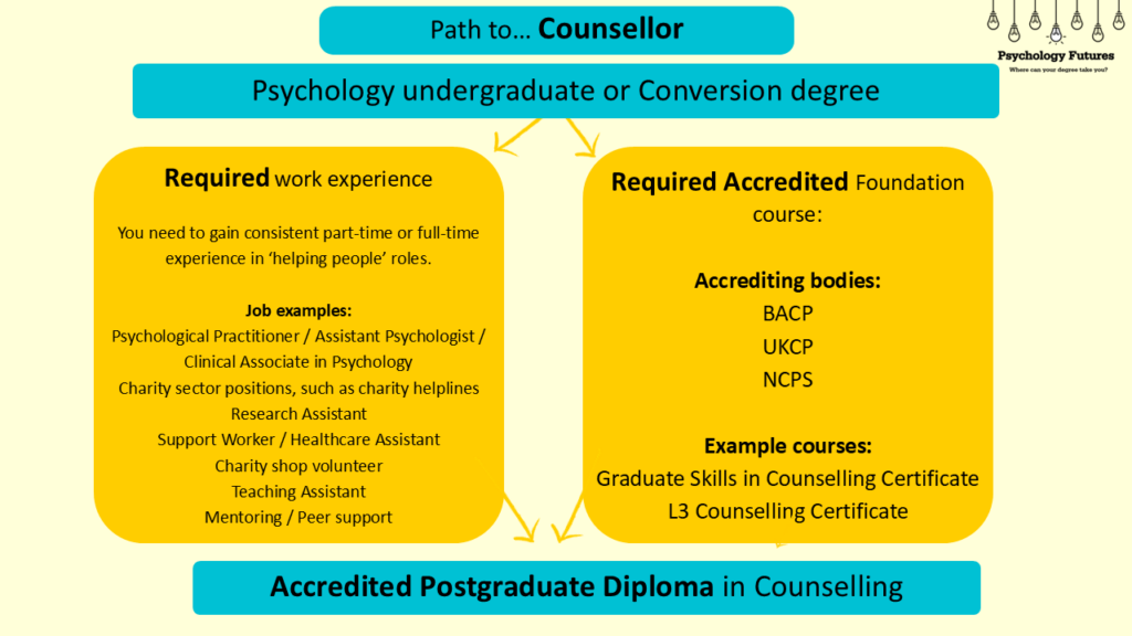 Example Foundation courses: University of Salford Graduate Certificate in Counselling, Level 3 Certificate in Counselling Studies