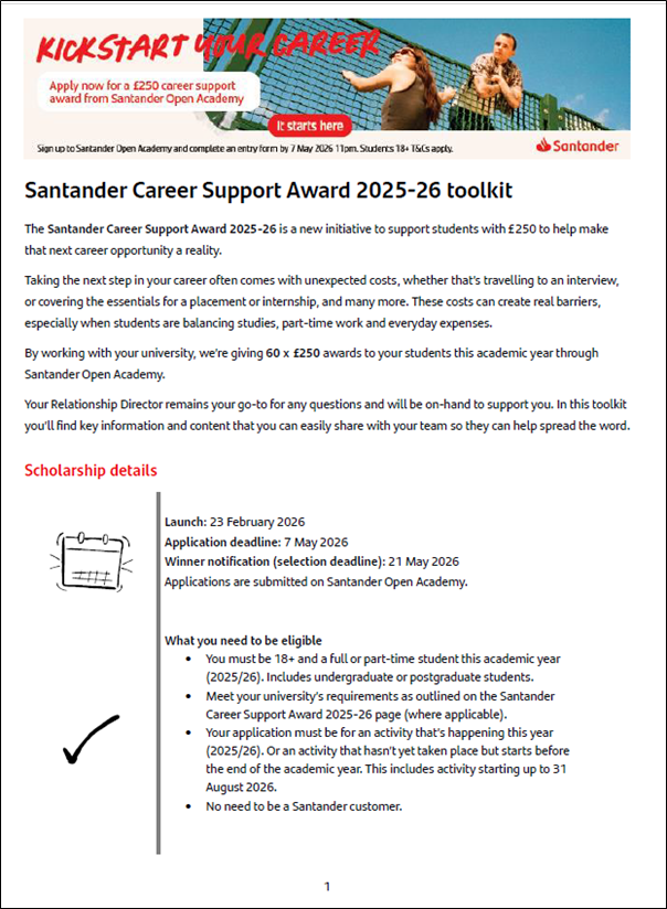 An AMAZING opportunity!! Santander Career Support Award 2025-26.
