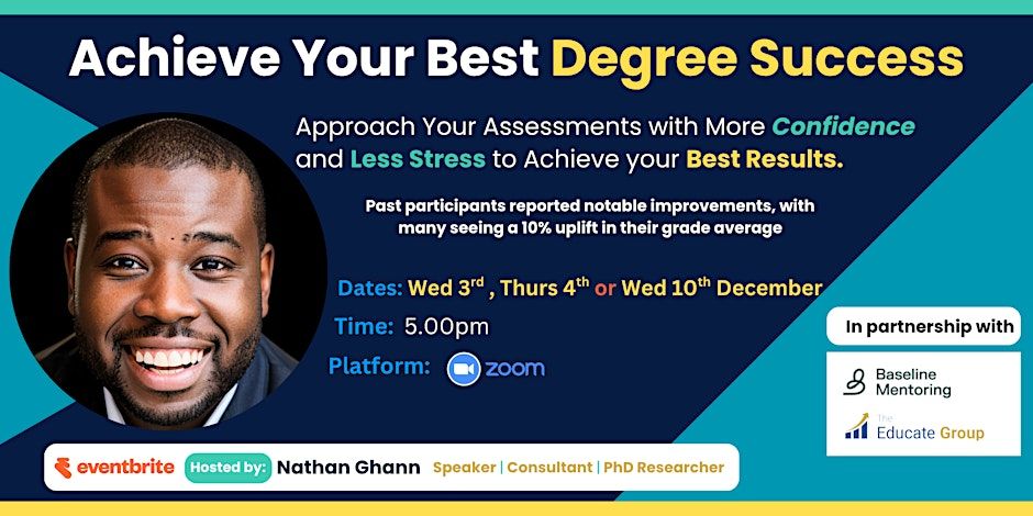 Virtual Event: Achieve Your Best Degree Success ✨ This is a free online masterclass designed to help you strengthen academic skills, build resilience, and gain clarity on what lecturers actually expect. Whether you’re in your first year, in final year aiming for a 2:1 or First, or simply feeling unsure about your academic progress, this session will equip you with the mindset and strategies you need to succeed.