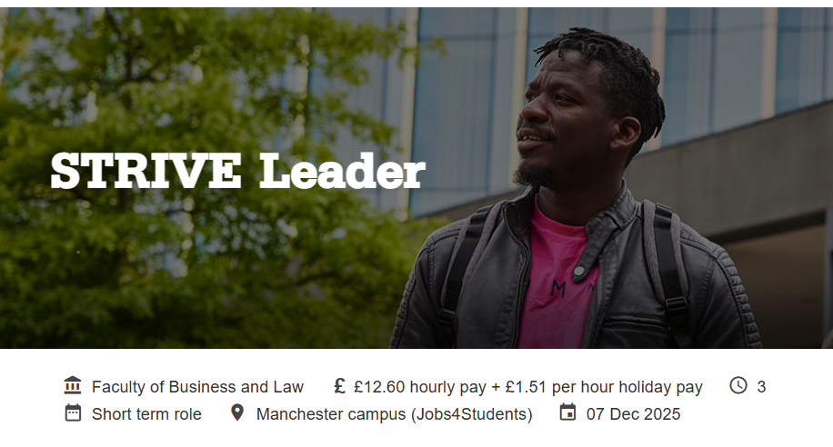 STRIVE is currently looking to employ up to 30 STRIVE leaders. Follow the Jobs4Student link to find out more. (Closing date is December 7th at 11:59pm.)