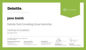 We worked with Forage to provide virtual internships (business simulations) for you to find out more about specific roles in different organisations. On successful completion of your virtual internship you are issued with a certificate (an example is here below)